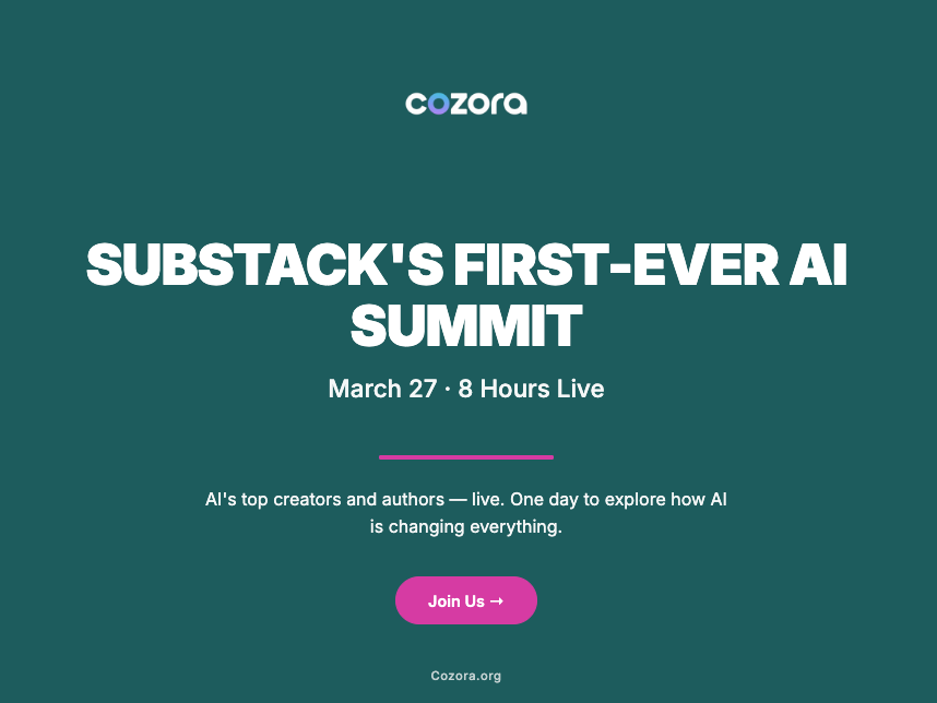 On March 27, Cozora is hosting the first-ever AI Virtual Summit on Substack